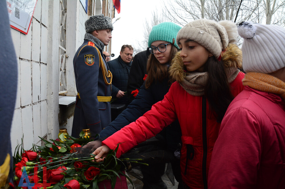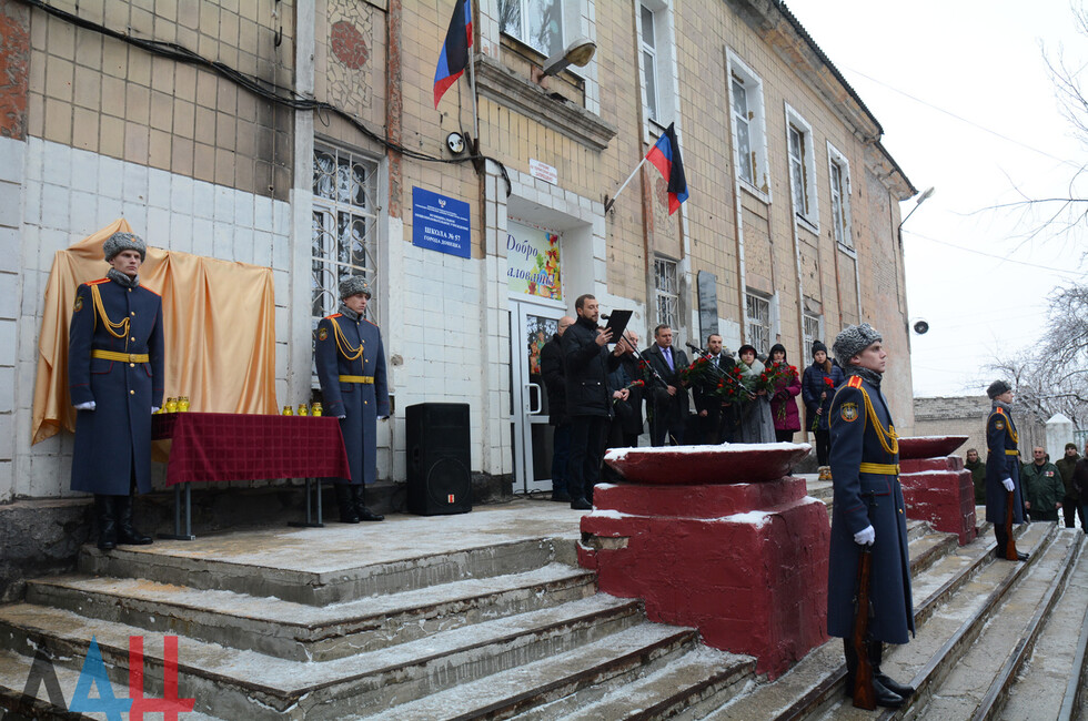 Донецк, 22 дек – ДАН. Представители ДНР и России открыли мемориальный знак, в память о жителях Республики, погибших в результате обстрела донецкой школы № 57 в 2014 году. Табличка была установлена на фасаде образовательного учреждения.