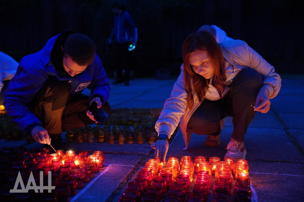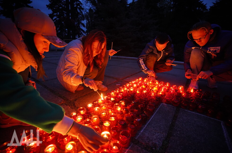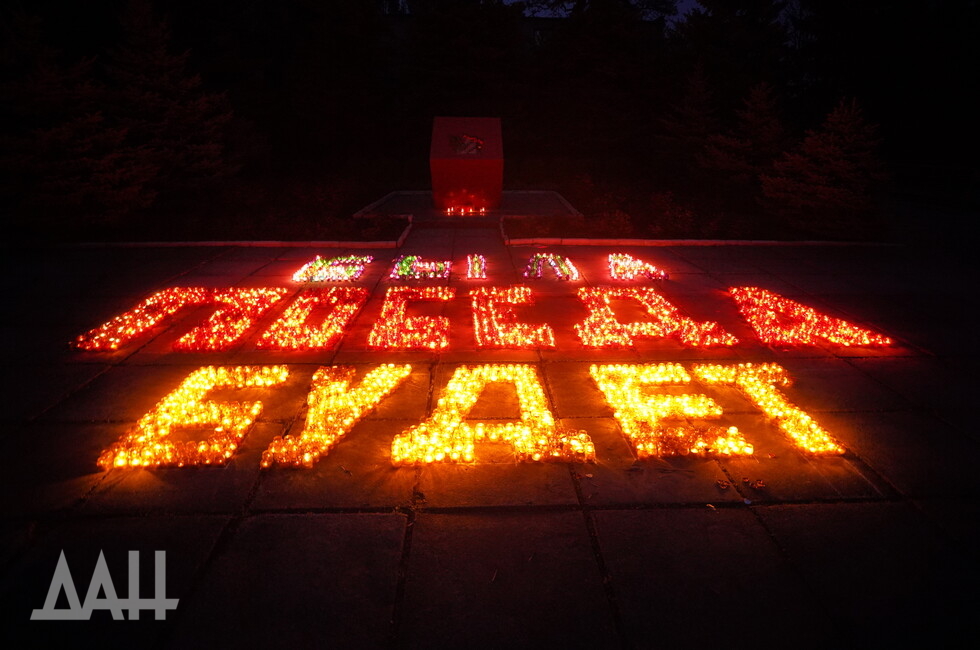 Акция «Свеча памяти» проводится в ДНР с 2015 года. Участники выкладывают из зажженных лампад тематические композиции и надписи, посвященные подвигу советского народа в Великой Войне.
