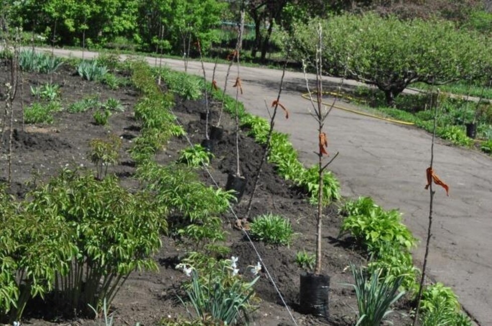 Донецк,78 мая – Корр. ДАН. Яблоневая Аллея памяти, подаренная Северным плодовым питомником Санкт-Петербурга, высажена в Республиканском ботаническом саду в Донецке.