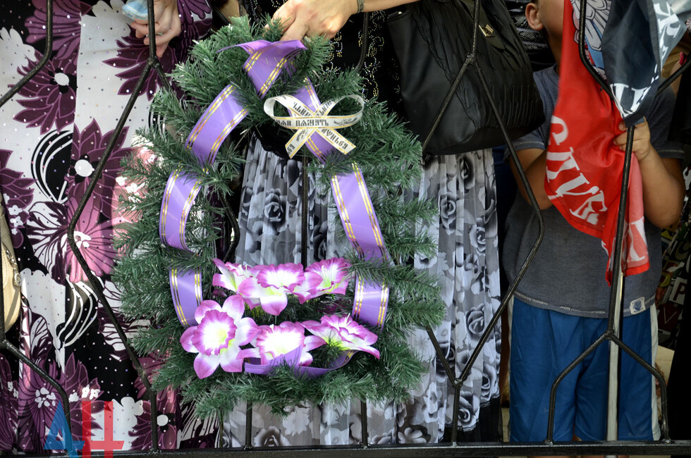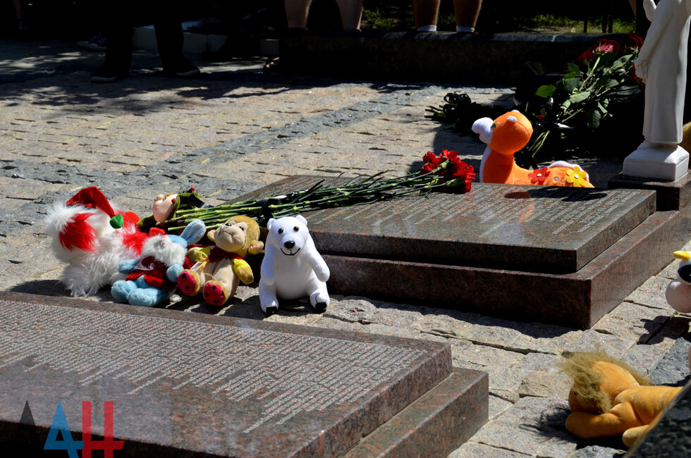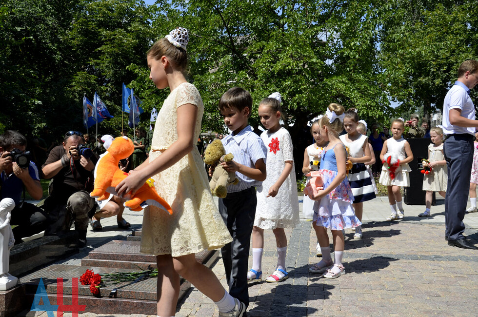 Горловка, 27 июл – корр. ДАН. Памятник погибшим в ходе военных действий горловчанам был торжественно открыт сегодня. Мероприятие, приуроченное к третьей годовщине со дня первого обстрела Горловки армией Украины, прошло в центре города.