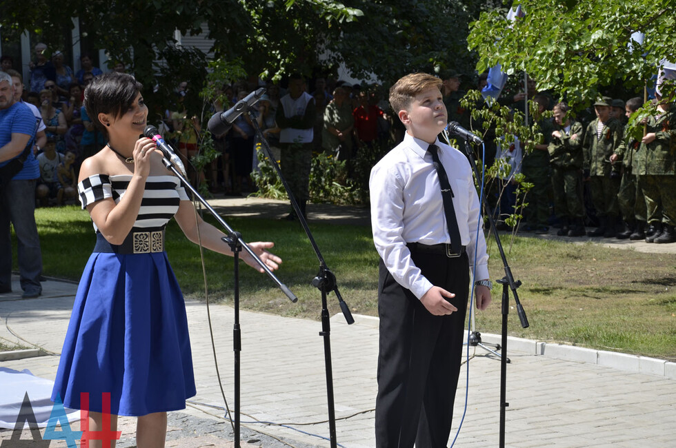 В церемонии открытия мемориала приняли участие председатель Народного Совета ДНР Денис Пушилин, министр образования и науки ДНР Лариса Полякова, и.о. главы администрации Горловки Иван Приходько, депутаты парламента и местные жители. Всего собралось порядка тысячи человек.