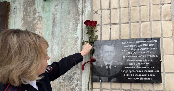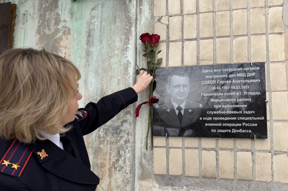 Коллеги возложили к доске цветы в память о погибшем. Начальник отделения по работе с личным составом ОМВД России «Харцызский» Наталья Николаева отметила, что родные Сергея Сокола всегда могут рассчитывать на помощь и поддержку.