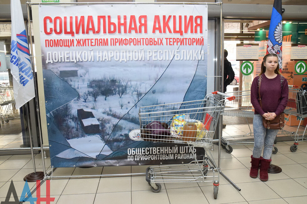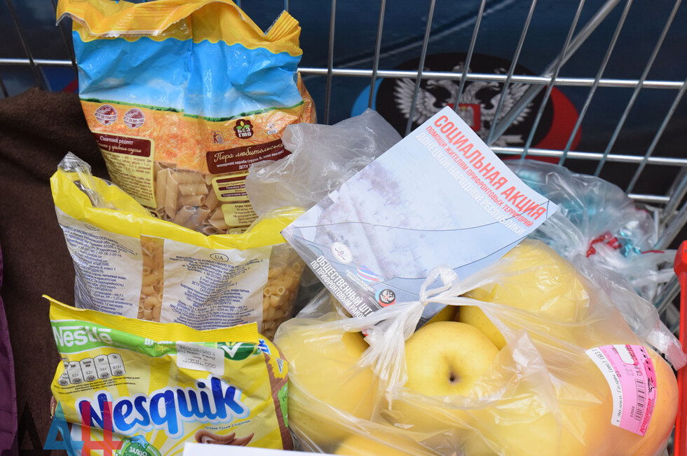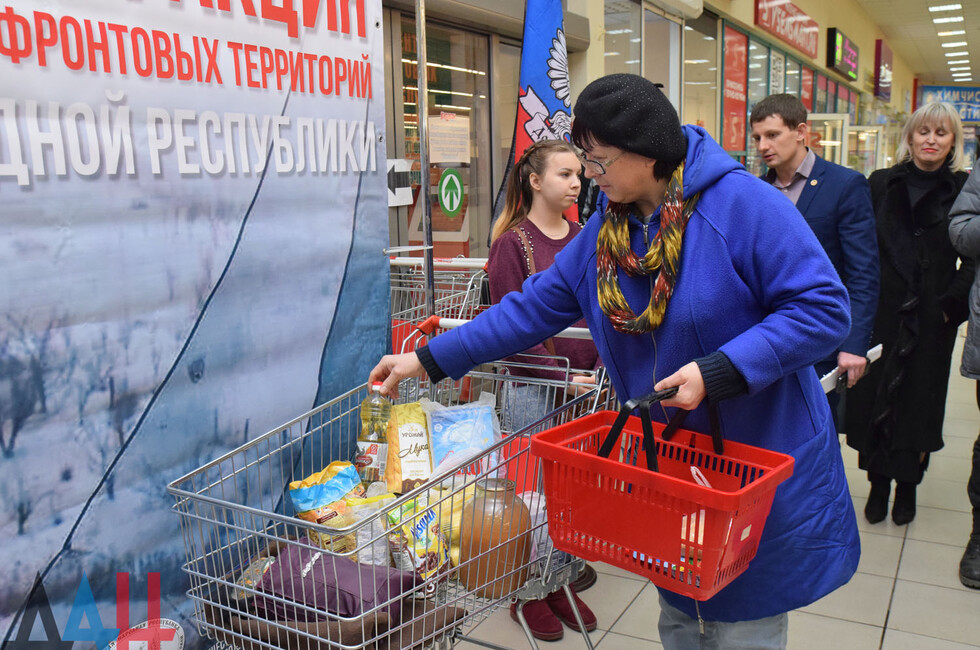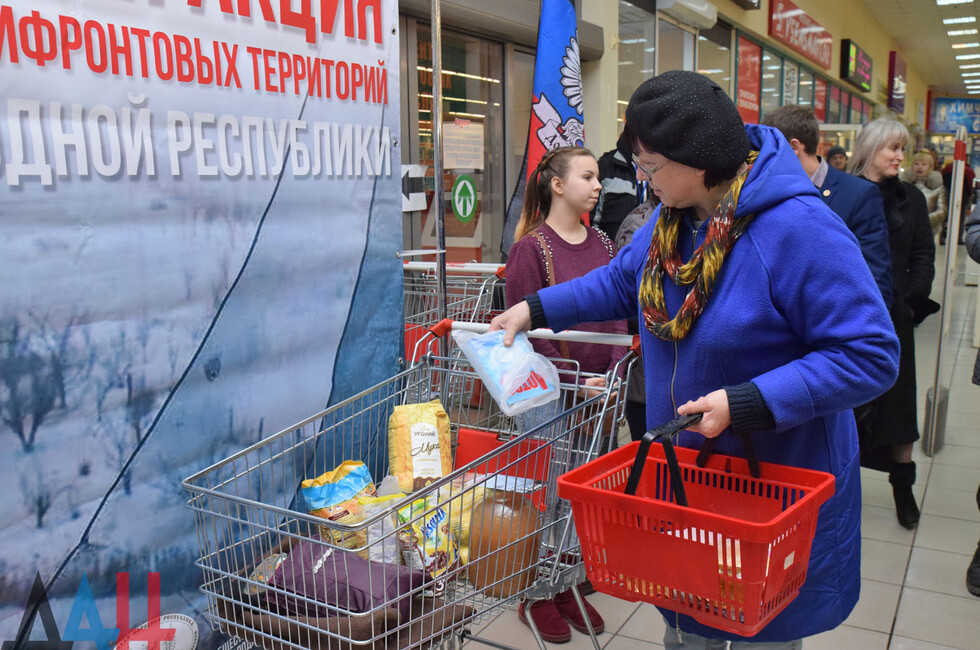 Донецк, 12 янв – ДАН. Акция по сбору гуманитарной помощи для жителей населенных пунктов, расположенных вблизи линии разграничения, началась сегодня в шести столичных супермаркетах и гипермаркетах. Инициатором мероприятия выступил Общественный штаб по прифронтовым районам ДНР при поддержке министерства промышленности и торговли Республики.