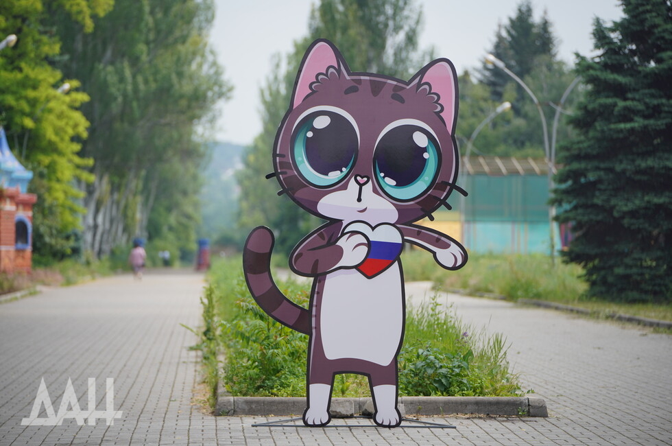 Донецк, 12 июн — корр. ДАН. Арт-объект, изображающий кота, держащего сердце в цветах российского триколора, появился в Макеевке. Его установили ко Дню России.