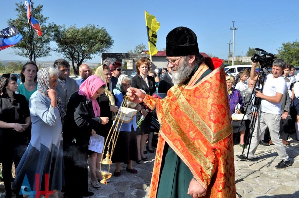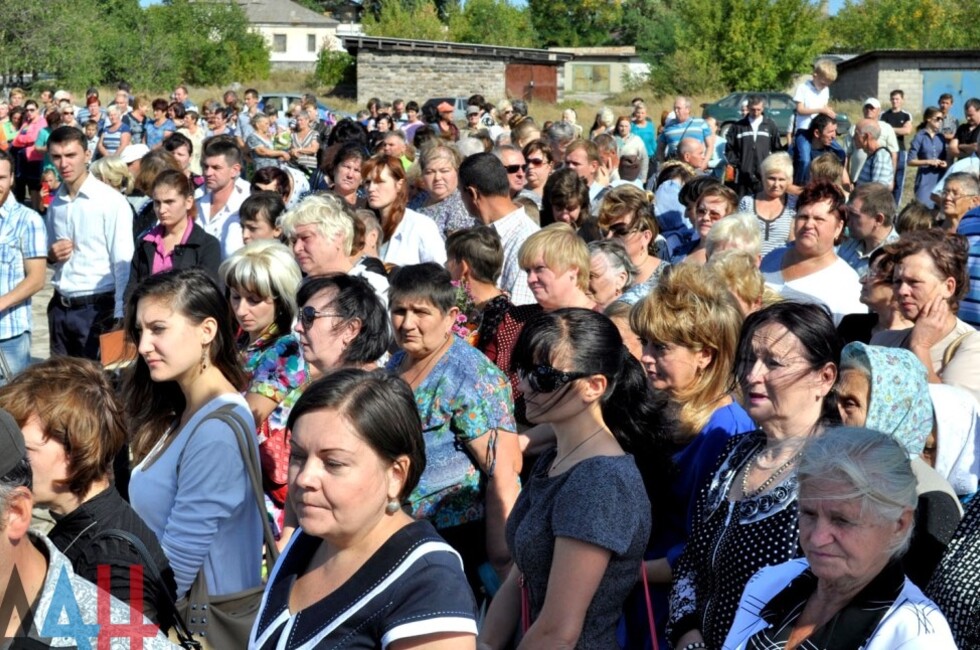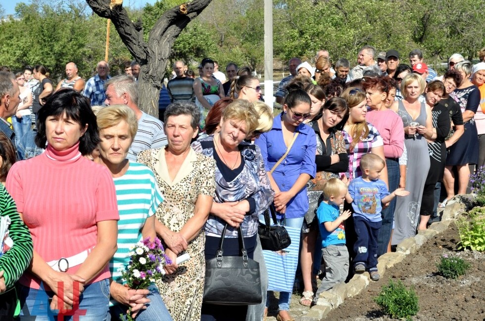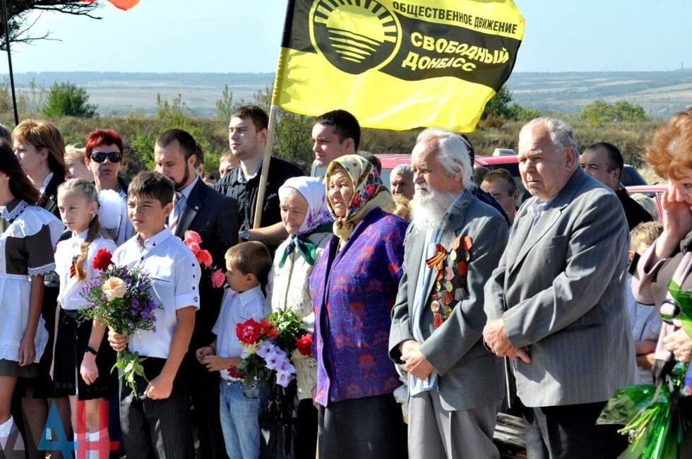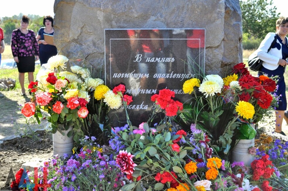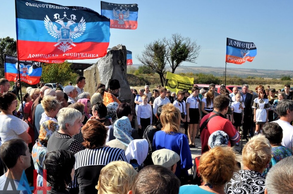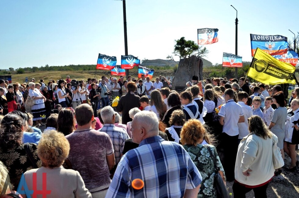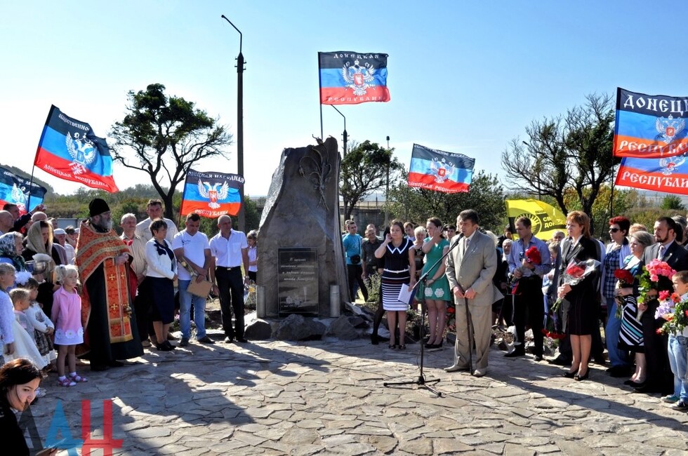 Донецк, 25 сен – корр. ДАН. Памятник мирным жителями и ополченцам, погибшим от рук украинских карателей, открылся сегодня на въезде в поселок Коммунар в Советском районе Макеевки. Церемонию открытия посетило около тысячи человек.