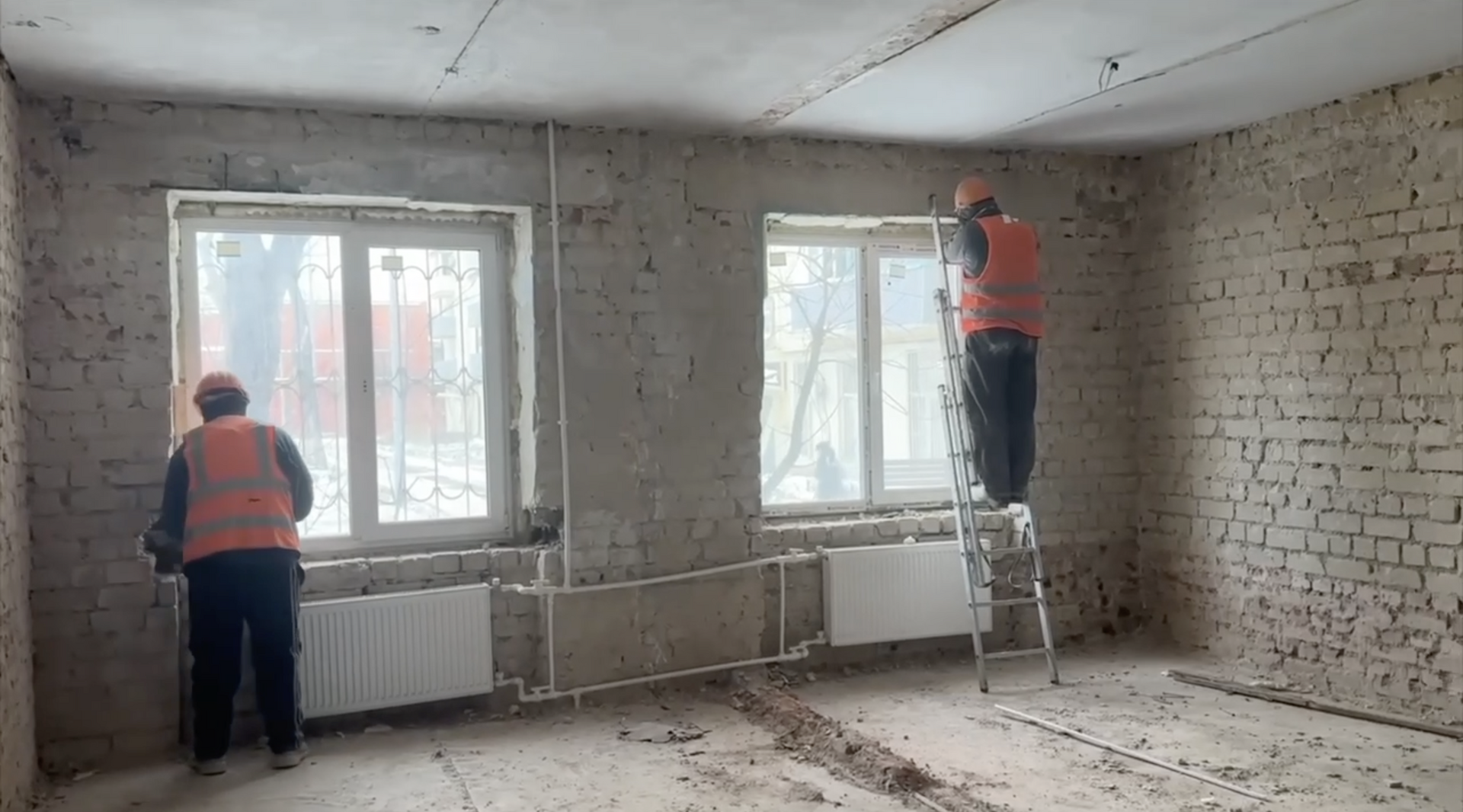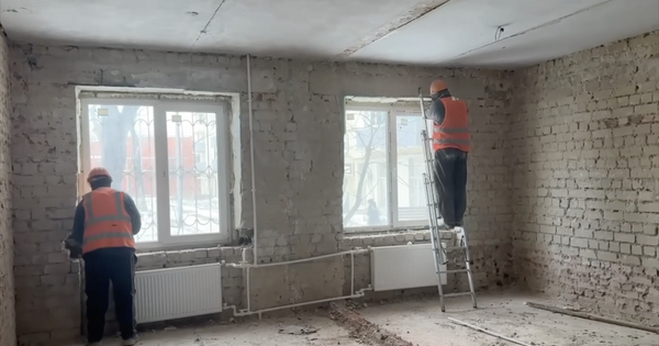 «В Центральном ЗАГСе Мариуполя продолжаются демонтажные работы. На данный момент на 80% мы сняли старые штукатурки со стен, с колонн, демонтировали плитку. Также параллельно сейчас идет согласование с пользователем, планировочного решения по Центральному ЗАГСу по расположению кабинетов рабочего персонала, ну и, соответственно, самого торжественного зала», — рассказал Александр Ряскин, начальник участка ООО «Модуль-Центр».