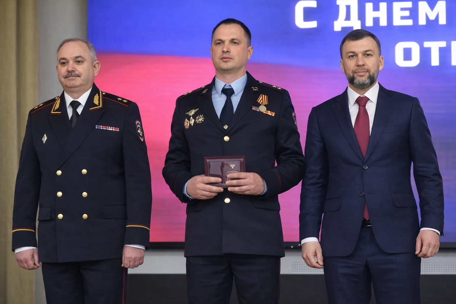 В ходе мероприятия Денис Пушилин и Павел Гищенко выразили глубокую благодарность правоохранителям за проявленные стойкость, мужество и верность присяге. Они вручили отличившимся сотрудникам государственные награды Донецкой Народной Республики, ведомственные награды, а также ценные подарки.