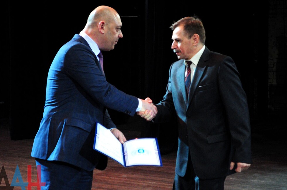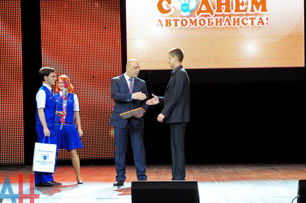После лучше работники отрасли получили из рук главы Минтранса грамоты Главы ДНР, Рожков в свою очередь передал автомобилистам грамоты Народного Совета Республики. Награды получили 14 человек. Еще 20 представителей автокомпаний получили грамоты министерство транспорта Республики.