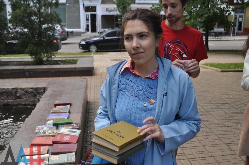 У фонтана «Реки Донбасса» между проспектами Театральный и Гурова была организована зона бук-кроссинга. Как пояснили в Донецкой республиканской библиотеке для молодежи, это возможность читателям обменяться книгами из домашних коллекций. Прохожие с интересом оценили инициативу книголюбов.