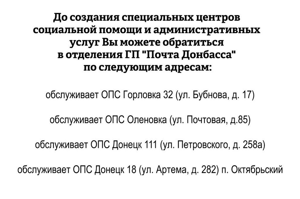 Напомним, что 17 февраля Главы Донецкой и Луганской Народных Республик Александр Захарченко утвердили программу гуманитарной помощи соотечественникам, проживающим в подконтрольной украинским властям части Донбасса. Основной целью программы является поддержка социально незащищенным жителей на оккупированных территориях. Программа включает оказание финансовой, медицинской помощи и образовательных услуг.