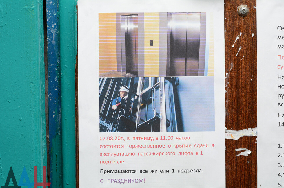 Торез, 7 авг - корр. ДАН. Общение Главы ДНР Дениса Пушилина с жителями Тореза 2 августа не прошло впустую. В городе начался ремонт лифтов, причем один из них - в доме № 25 «Четвертого» микрорайона - не работал с прошлого века.