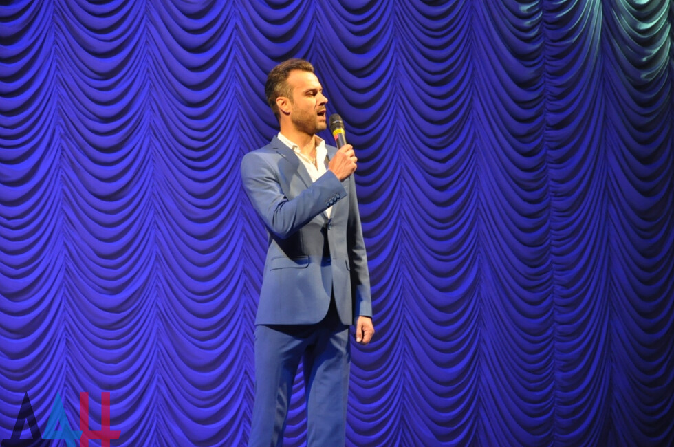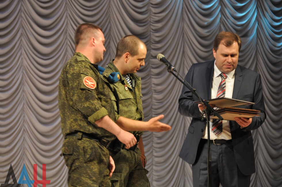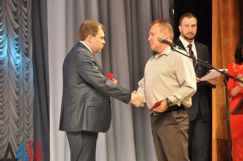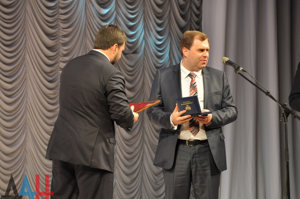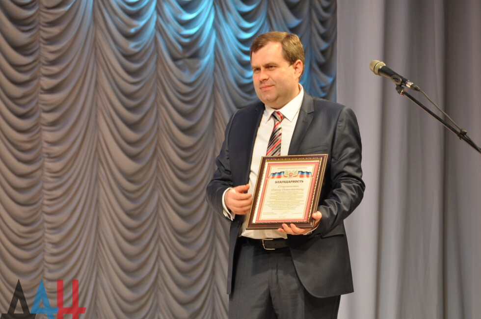 Затем на сцену поднялся руководитель Минздрава. Он зачитал поздравление с предстоящим профессиональным праздником от Главы ДНР Александра Захарченко.