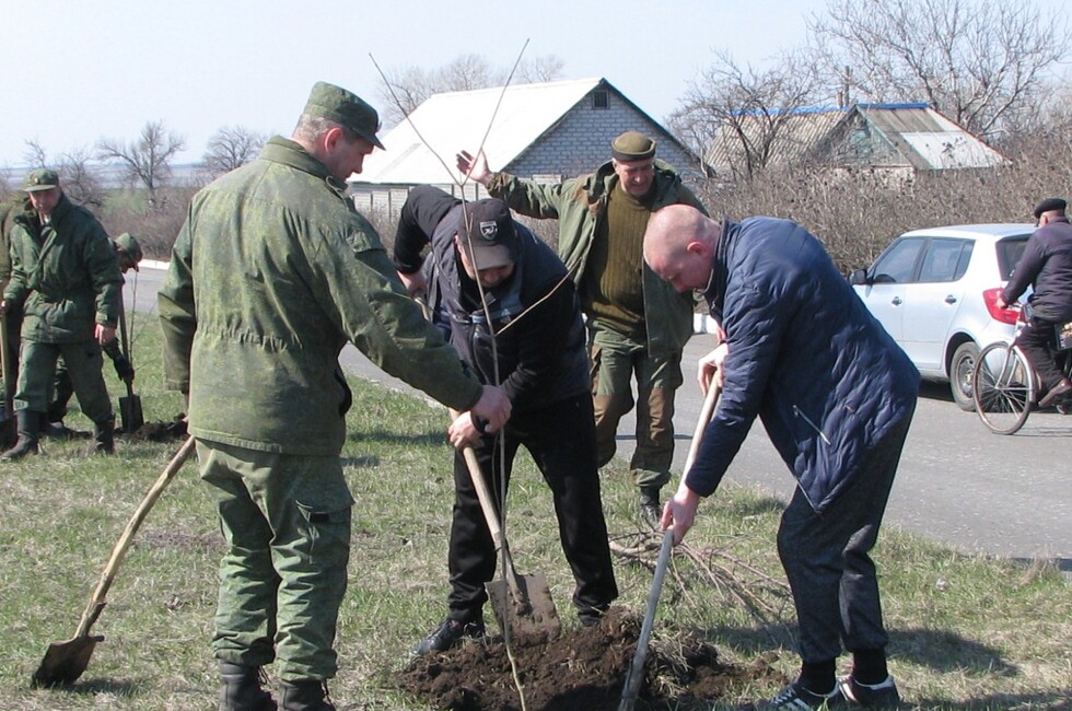 Кроме того, и.о. главы администрации города Игорь Маринков совместно с военнослужащими Народной милиции ДНР высадили саженцы рябины, клена и боярышника.