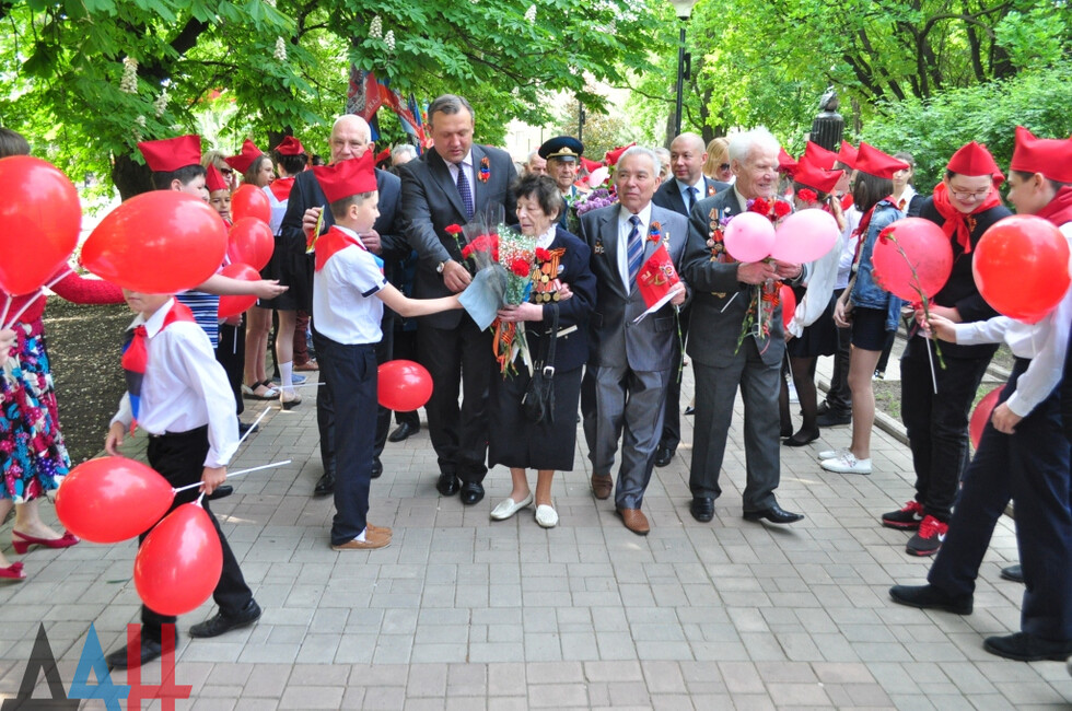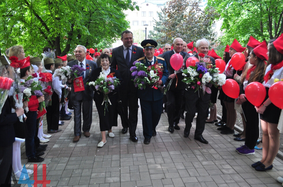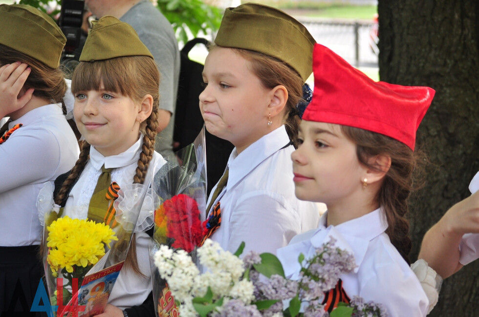В торжественном мероприятии приняли участие и.о. главы администрации Донецка Алексей Кулемзин, глава администрации Ворошиловского района столицы Владислав Латынцев ветераны Великой Отечественной войны, а также ученики школ города.