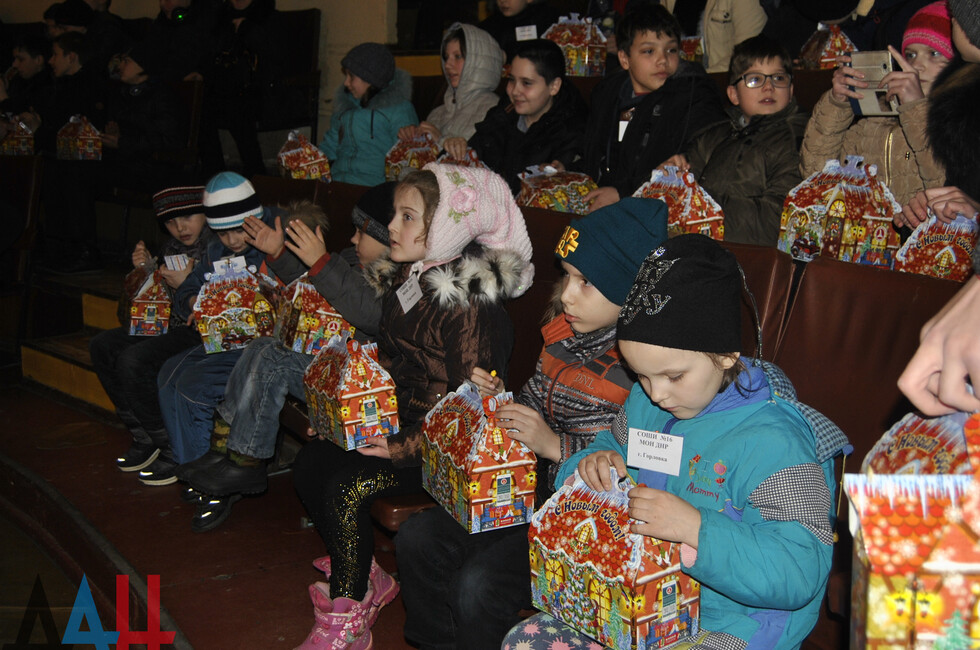 Для ребят подготовили большую развлекательную программу с аниматорами и клоунами, песнями, танцами. Самодеятельные коллективы Донецка, Макеевки и Горловки подготовили для детей концерт. В завершение праздника все участники получили от Главы Республики Александра Захарченко подарки. *нс*рб