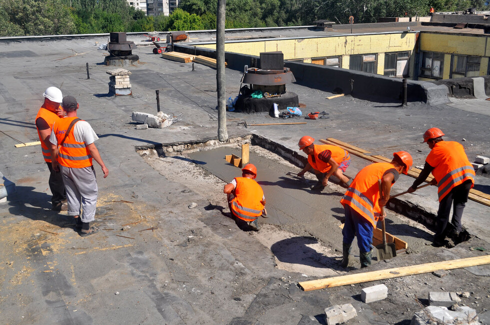 «После прямого попадания в крышу школы в 2015 году, были разрушены перекрытия, также после многочисленных обстрелов пострадали фасад и остекление. Школа была включена во второй этап восстановления, и как вы видите, работы начались. Сегодня строители восстановят бетонную часть крыши, после этого начнутся кровельные работы и замена окон», – рассказал в беседе с журналистами замглавы Минстроя.