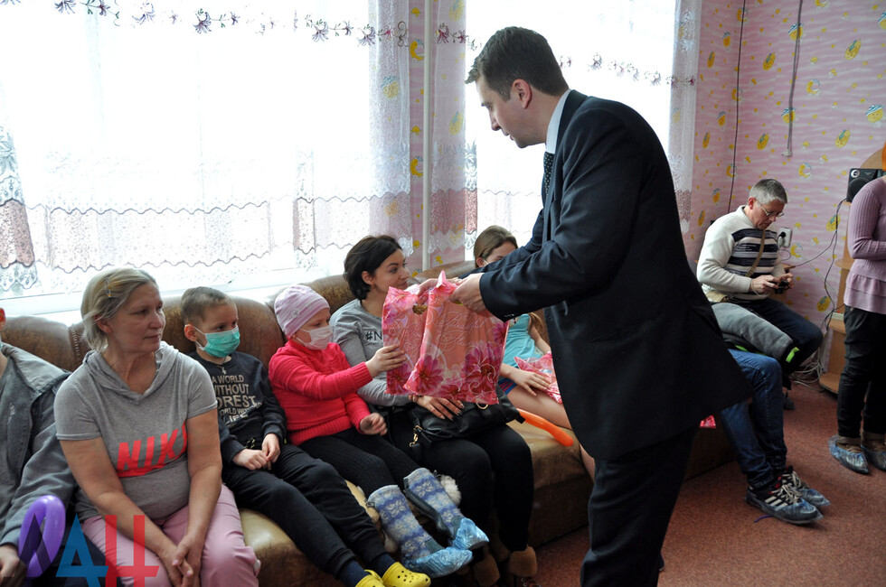 Донецк, 15 фев – корр. ДАН. Всемирный день онкобольного ребенка в столице ДНР отметили сегодня концертом с подарками в детском онкогематологическом отделении Института неотложной и восстановительной хирургии им. Гусака. Мероприятие было организовано при участии министерства здравоохранения и парламентариев от фракции «Донецкая Республика».