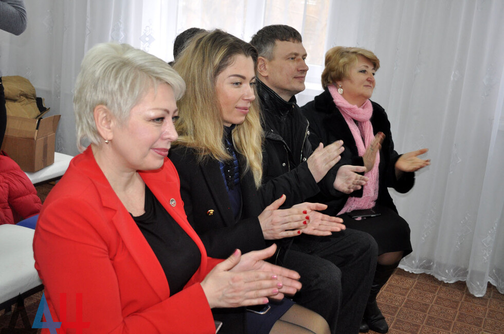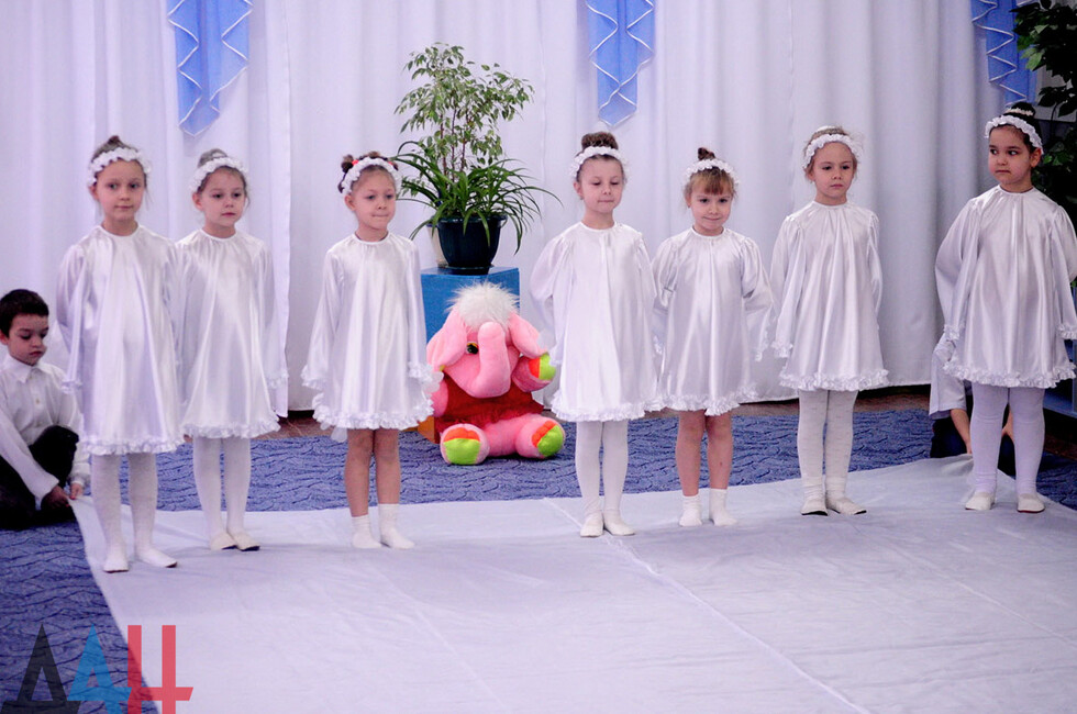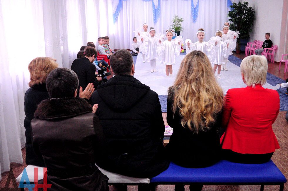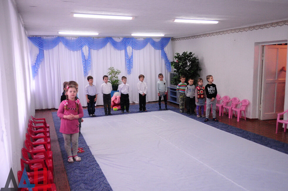 Дети встретили гостей небольшим концертом. Они спели песни и прочитали стихи, посвященные прошедшему Дню защитника Отечества. По завершению юные воспитанницы дошкольного учреждения выступили с танцем белых голубей - в знак того, что дети Донбасса хотят мира.
