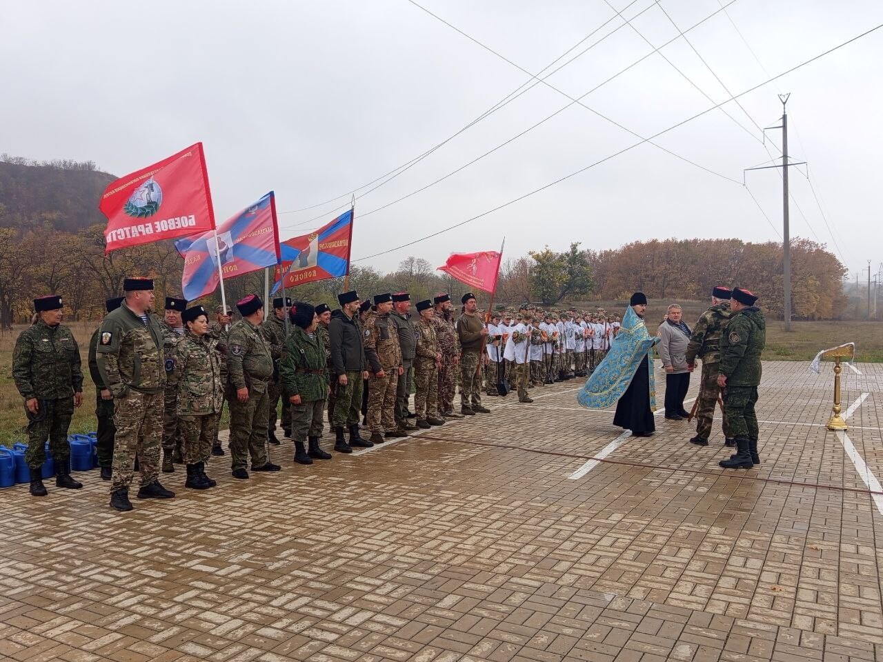 После молитвы казаки Приазовского Казачьего Войска вместе с кадетами корпуса имени А.В. Захарченко высадили более 80 саженцев берез, которые были привезены из питомников Российской Федерации. В завершение праздника участники отведали традиционное казачье блюдо — кулеш.
