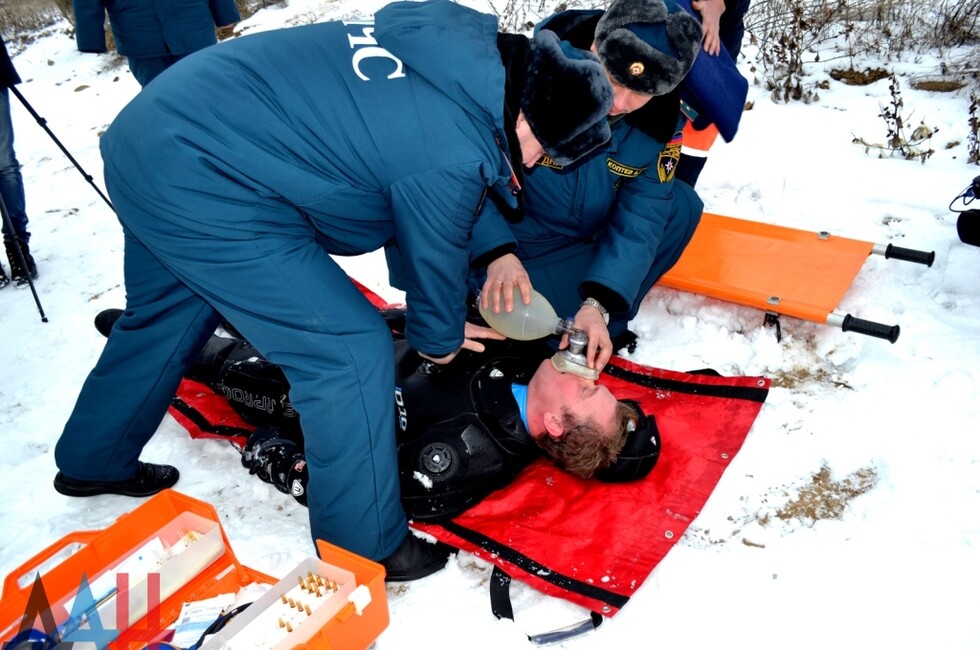 Донецк, 28 янв – корр. ДАН. Сотрудники водолазной группы МЧС Республики провели сегодня рейд на одном из крупнейших водоемов столицы – Донецком море. В ходе мероприятия спасатели продемонстрировали навыки по спасению человека из воды в зимний период и проинструктировали рыбаков о правилах поведения на льду.