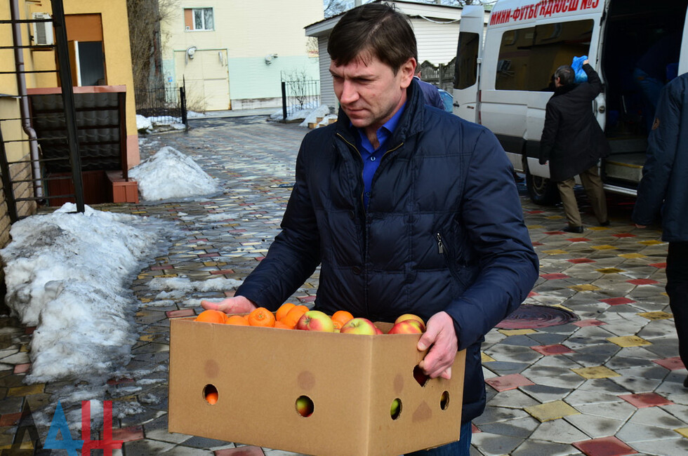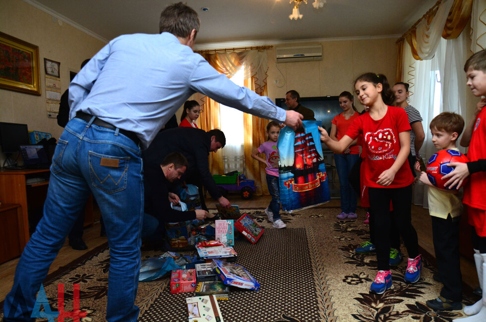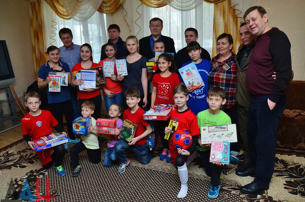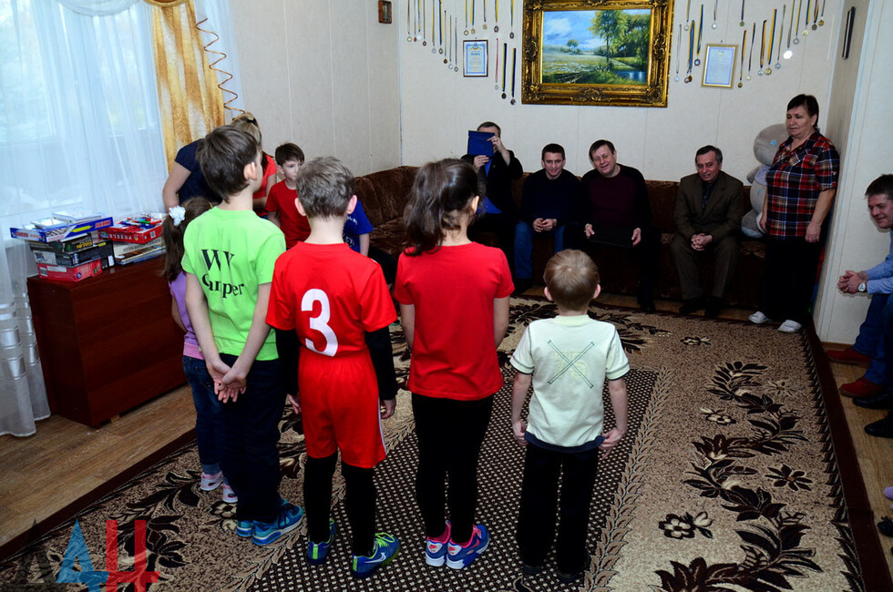 Донецк, 24 фев – корр. ДАН. Делегация ветеранов футбола из Санкт-Петербурга и Северодвинска сегодня посетила детские дома в Куйбышевском и Буденновском районах Донецка. Россиян сопровождал министр молодежи, спорта и туризма ДНР Михаил Мишин.