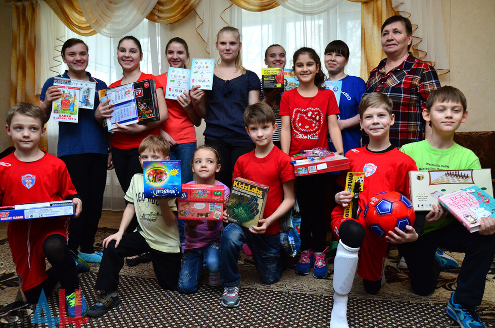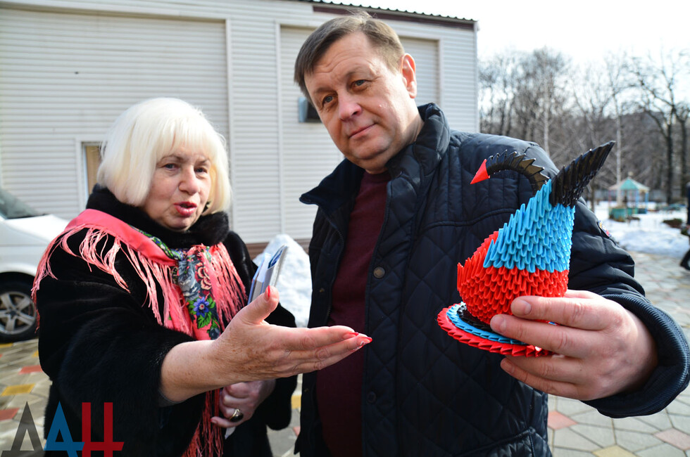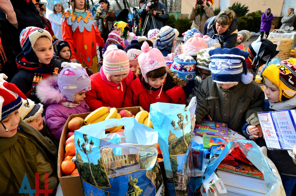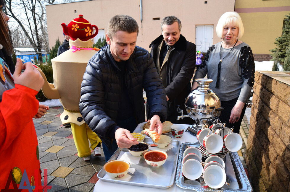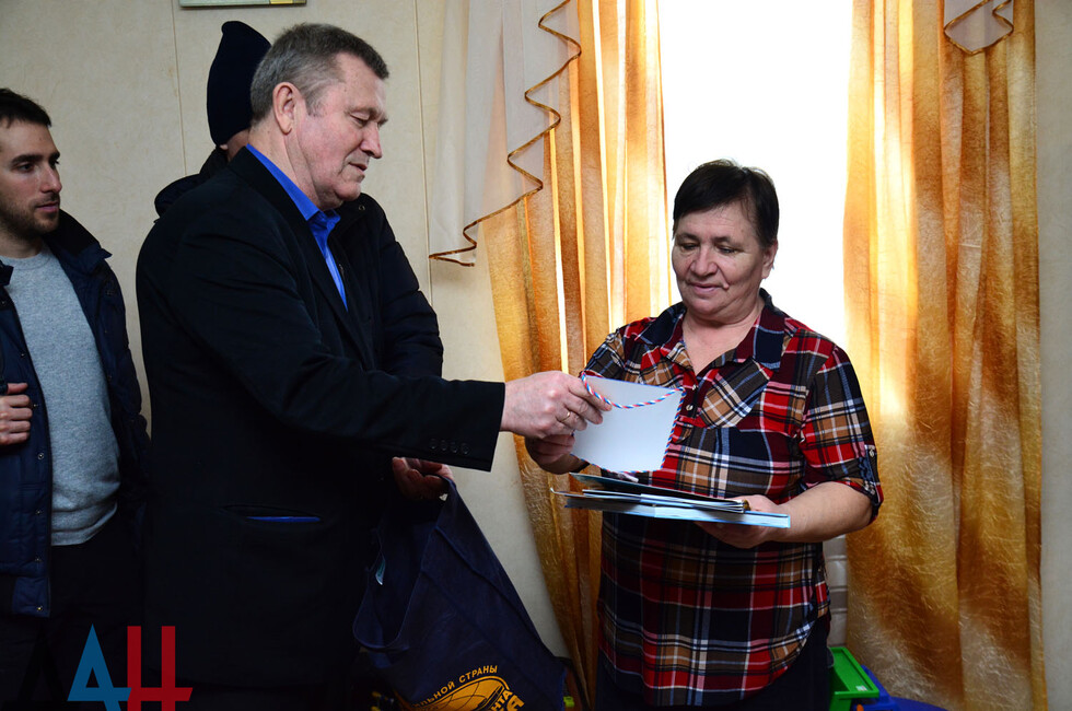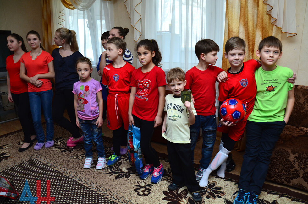 Сначала ветераны футбола России побывали в детском доме «Теремок» в прифронтовом Куйбышевском районе Донецка. На пороге их встретили с блинами воспитанники и педагоги. Спортсмены передали ребятам сладости, фрукты, развивающие игры, раскраски и канцелярию, а в ответ получили в знак благодарности открытки с поздравлениями с 23 февраля. Директор учреждения Раиса Прилипко провела экскурсию по «Теремку».