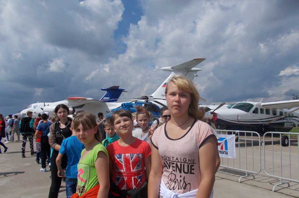 «В Москве мы ездили на МАКС-2017. Очень понравилось там, как летали самолеты, была очень интересная экскурсия, показывали большие вертолеты, самое интересное, что мне запомнилось то это, как самолеты рисовали российский флаг в виде сердца», – рассказала корр. ДАН 14-летняя Дарья Пибикова.