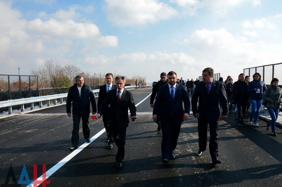 Дебальцево, 27 окт – ДАН. Временно исполняющий обязанности Главы ДНР Денис Пушилин открыл восстановленный мост в Дебальцево, который был поврежден в ходе боевых действий в 2015 году, передает корр. ДАН с места события.