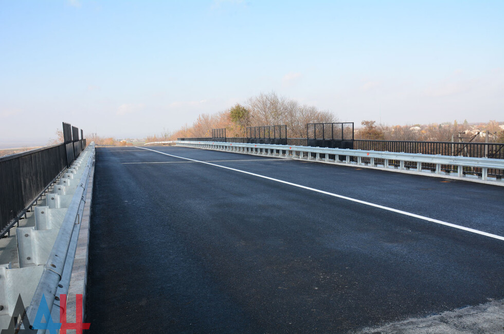 Добавим, что наиболее сложным этапом восстановления объекта стал монтаж металлических балок пролетного строения. Новые балки, изготовленные на Донецком заводе металлоконструкций, весили около девяти тонн и имели длину более 20 метров. Металлические балки, состоящие из двух частей, предварительно монтировались на специальной монтажной площадке в цельную конструкцию и устанавливались взамен разрушенных бетонных. Кроме того, для подготовки подъездных путей к мосту специалисты ООО «Автобан» выполнили ямочный ремонт почти 2100 квадратных метров асфальтного покрытия. *ум*сж*нк