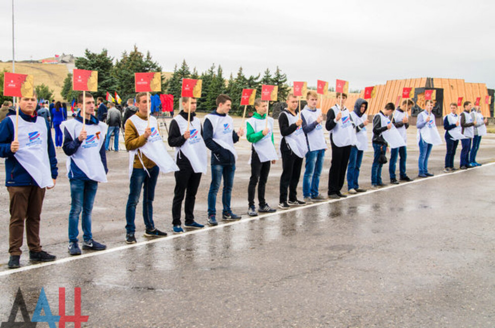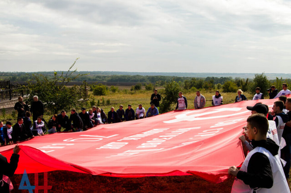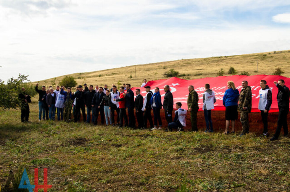 Участники мероприятия высадили 75 туй на аллее возле часовни святого Александра Невского, которая возведена у подножия Саур-Могилы в память об ополченцах Донбасса, павших в боях 2014 года. Затем собравшиеся развернули большое Знамя Победы, которое привезли с собой делегаты из Владимирской области России.