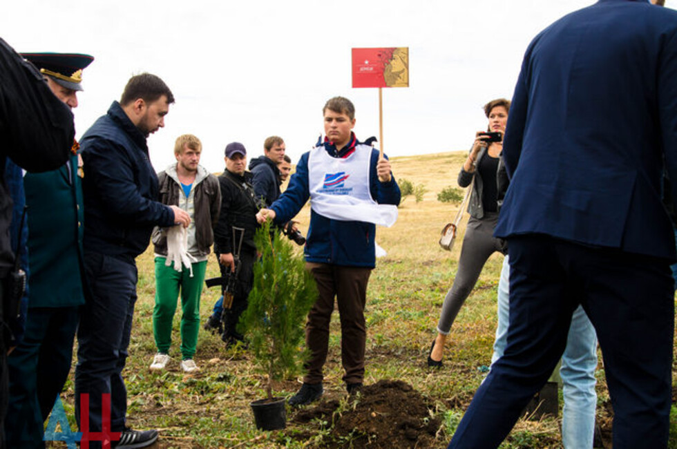 В высадке деревьев вместе с врио Главы ДНР прияли участие: зампредседателя Народного Совета Ольга Макеева, руководитель центрисполкома ОД "Донецкая Республика" Наталья Волкова, лидер ОО «Молодая Республика» Никита Киосев, руководители министерств и местных органов власти ДНР, руководитель смоленского областного отделения "Российской общественной организации инвалидов войны и военных конфликтов» Алексей Терлецкий, ветераны, представители городов-героев и городов воинской славы России и Украины.