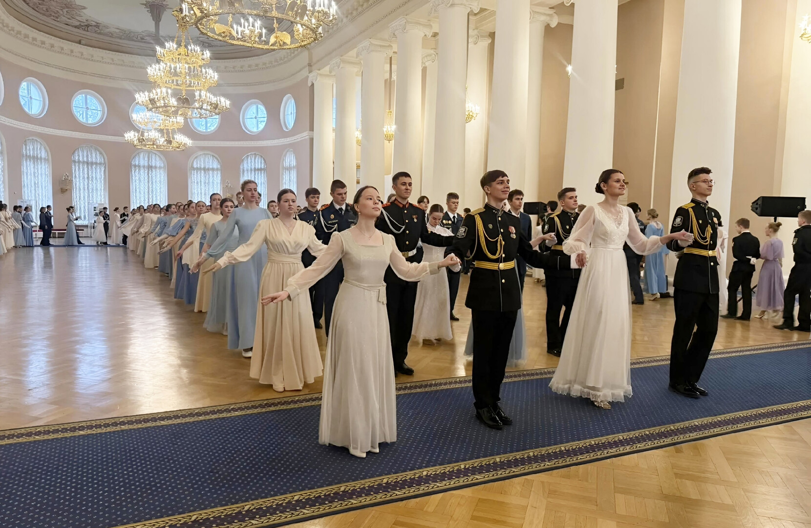 По приглашению губернатора Санкт-Петербурга Александра Беглова кадеты из Мариуполя стали полноправными участниками праздника, который объединил около 300 юношей и девушек. 150 пар исполняли вальс, полонез и другие классические танцы.