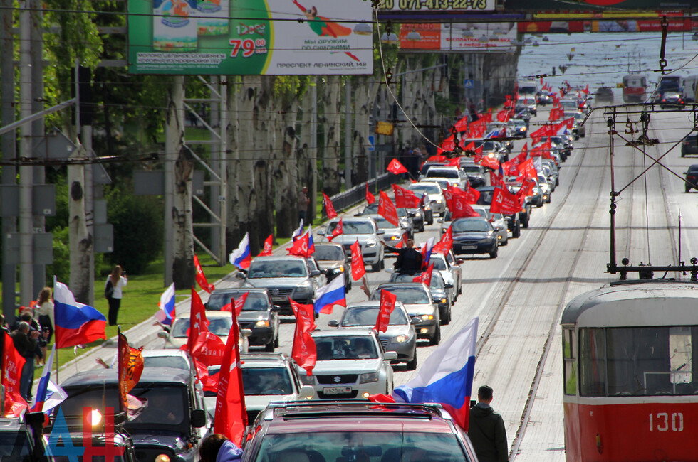 Донецк, 9 мая – корр. ДАН. Более 1000 машин сегодня проехались по Донецку в рамках II Республиканского «Автопробега Великой Победы». Мероприятие было приурочено к 76-летию Победы Советского Союза в Великой Отечественной войне.