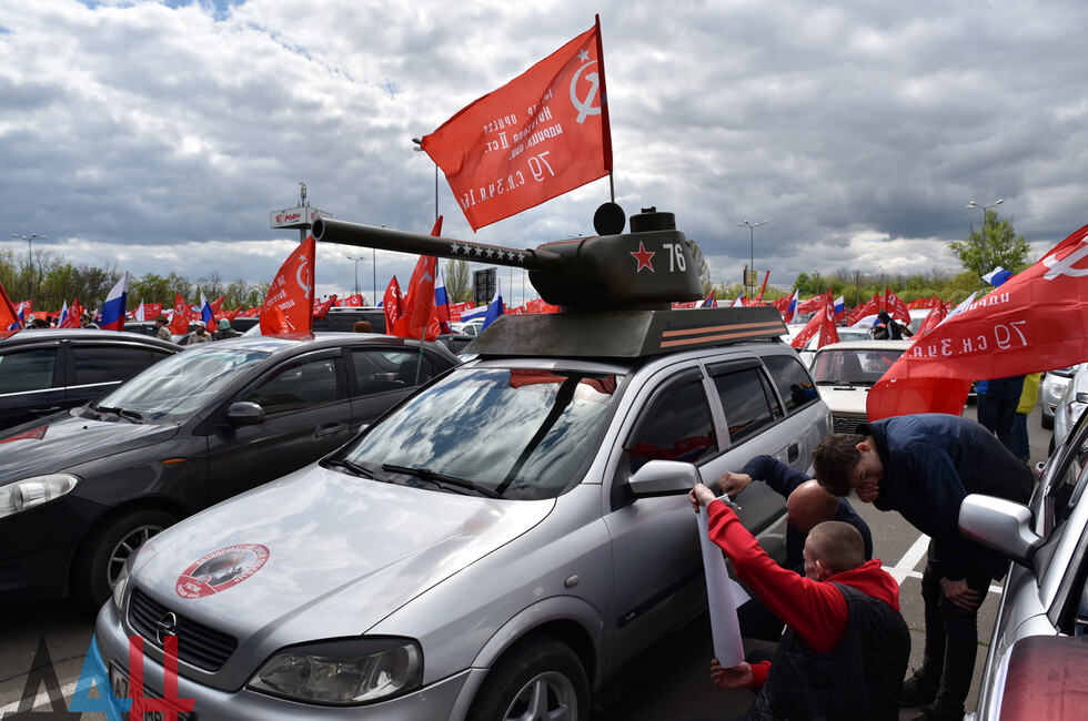 Следует отметить, что участники пробега проявили фантазию, украшая свои автомобили. Были, к примеру, машины с прикрепленными к ним макетами танковых башен и пулеметов. Кроме того, на многих машинах были российские флаги. Всего колонна преодолела порядка 20 километров по главным улицам столицы ДНР.
