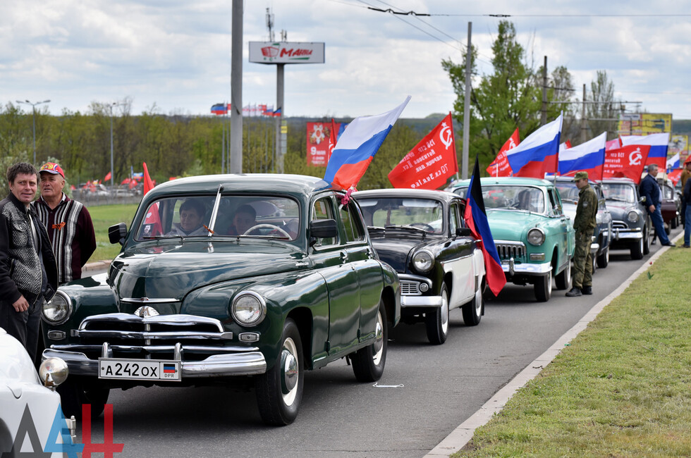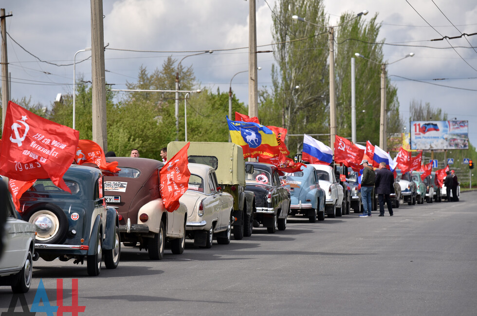 Участники пробега взяли старт с парковочной площадки супермаркета «Манна» в Ленинском районе Донецка. Экипажу каждой машины организаторы автопробега выдали копию Знамени Победы. Затем машины проехались Ленинском проспекту, улицам Университетская, Артема, а также проспектам Мира и 75-летия ФК «Шахтер», где возле парка Ленинского комсомола для участников мероприятия была развернута выставка ретро-автомобилей и полевая кухня.