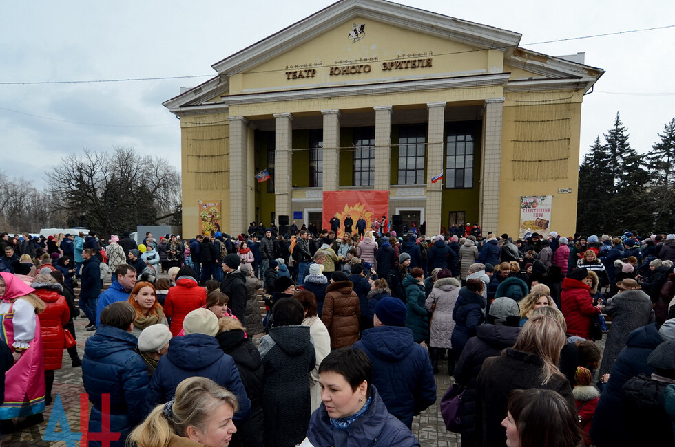 Донецк, 29 фев – корр. ДАН. Народные гулянья в честь Масленицы прошли сегодня на Театральной площади в центре Макеевки. На празднике собрались сотни жителей Донецкой Народной Республики, передает корр. ДАН.