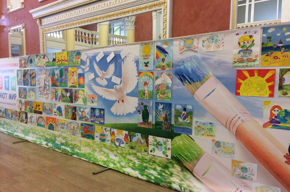 Донецк, 21 сен – корр. ДАН. Выставка детских рисунков под названием «Дети рисуют мир» при поддержке врио Главы ДНР Дениса Пушилина прошла сегодня в Донецком дворце культуры им. Куйбышева. Она была приурочена к празднованию Международного дня мира.
