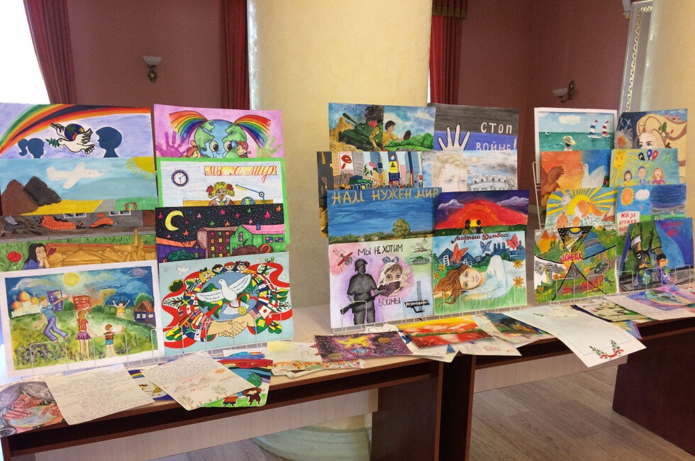 Экспозиция включила в себя свыше тысячи рисунков юных художников со всей Донецкой Народной Республики, кроме того было представлено порядка 500 писем детей с обращениями к мировым лидерам о прекращении войны в Донбассе и во всем мире.