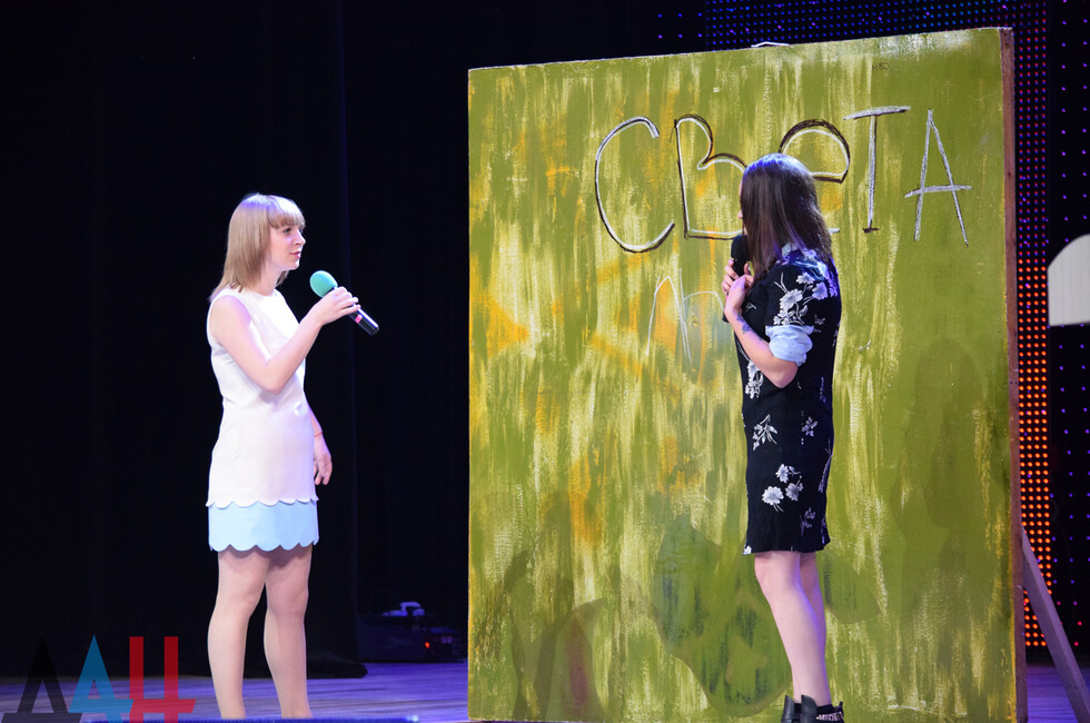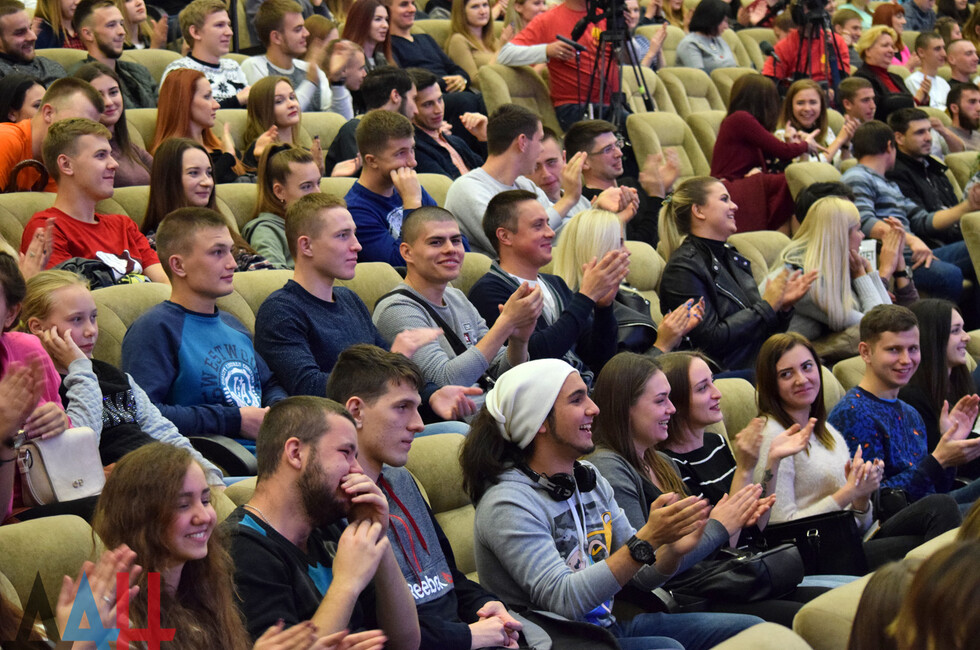 Донецк, 5 окт – корр. ДАН. Юмористы из ДНР и ЛНР сегодня встретились в полуфинале Юго-Восточной Лиги КВН на сцене Центра славянской культуры в Донецке. Игра собрала полный зал зрителей – всего, по оценке корр. ДАН, около тысячи человек.