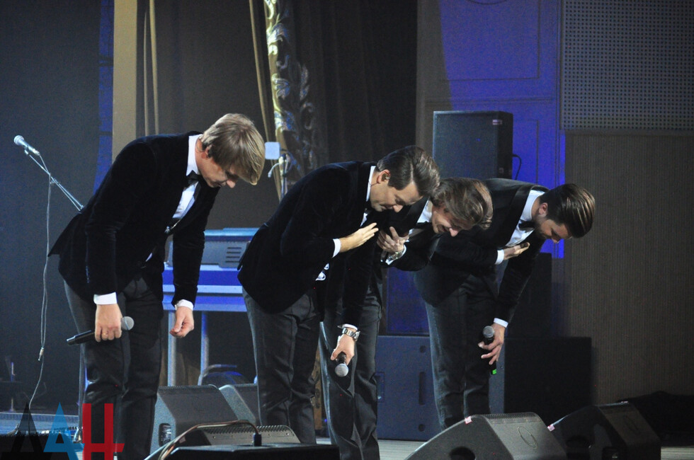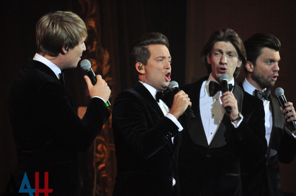 Первой выступила группа «Кватро»: артисты исполнили ретро-композиции из репертуара Петра Лещенко, Муслима Магомаева, Юрия Антонова.