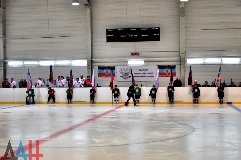 После поздравлений на лед вышли хоккеисты. Команды сыграли со счетом 8:6 в пользу сборной ДНР.