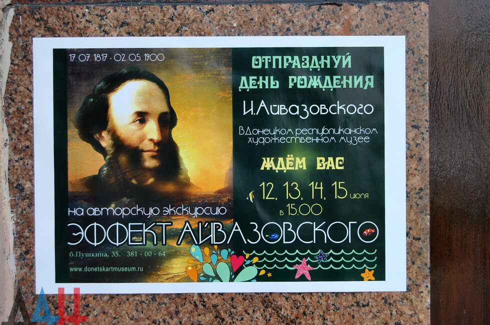 «Авторами представленных полотен стали художники творческого объединения «Вдохновение», действующего при Донецком республиканском учебно-методическом центре культуры и искусств. Дополнит выставку подготовленная сотрудниками музея авторская экскурсия, посвященная жизни и творчеству Айвазовского», - отметила директор худмузея Надежды Анищенко.