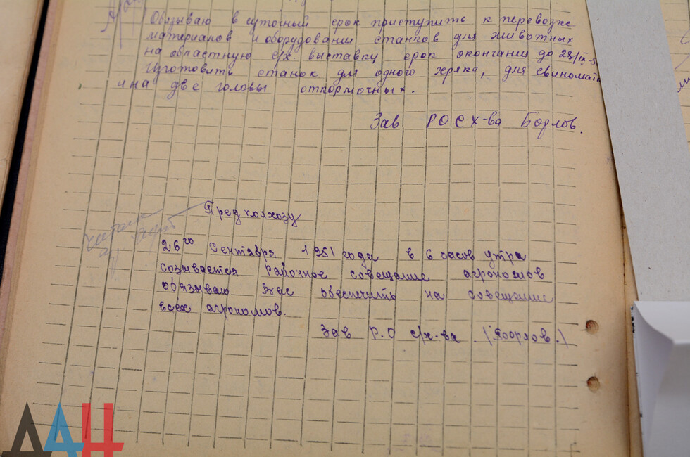 Также для выставки были отобраны архивные документы о развитии района с 1944 года. Некоторые из них за неимением чистых листов написаны на немецких блокнотах и книгах.