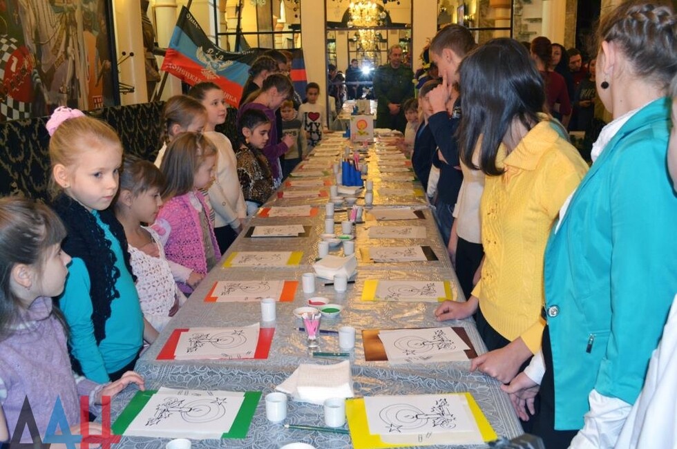Донецк, 16 дек – корр. ДАН. Примерно полсотни юных жителей Донецкой Народной Республики попробовали сегодня свои силы в качестве художников по ткани. Мастер-классы по рисованию были организованы общественным движением «Донецкая Республика» и Федерацией профсоюзов ДНР для детей активистов.