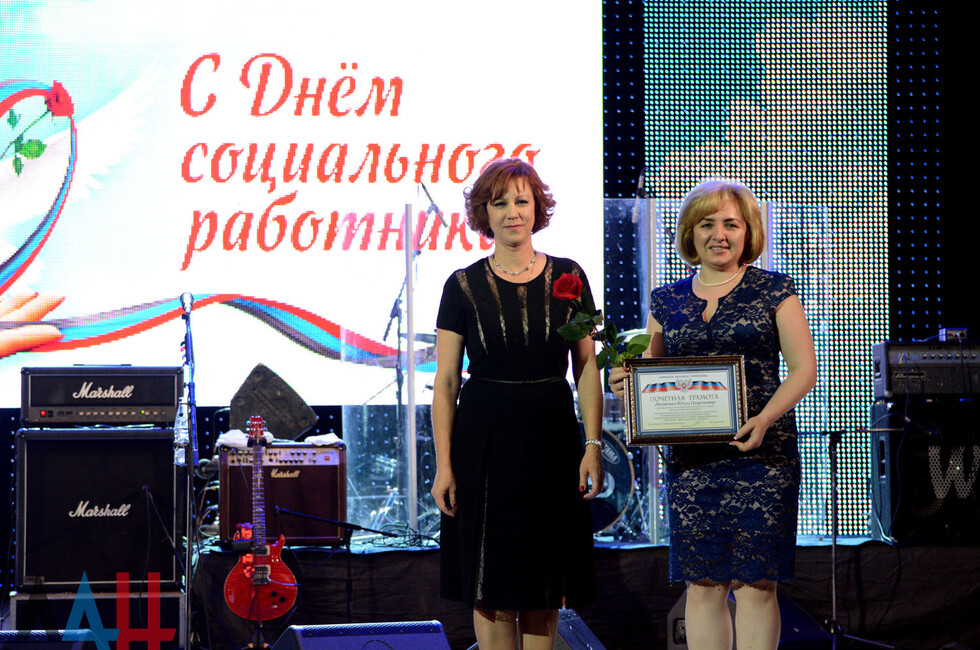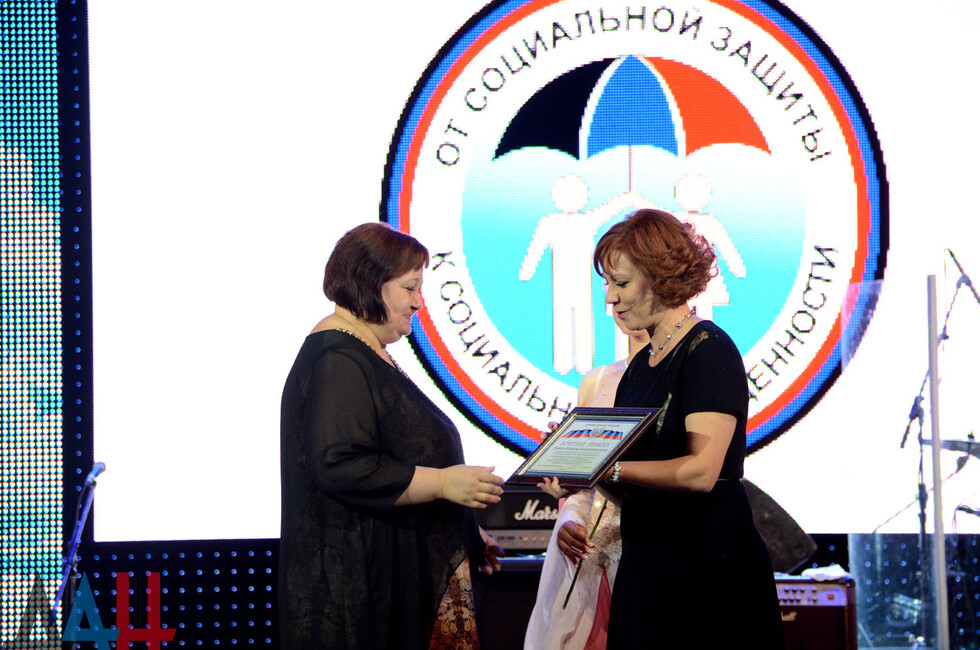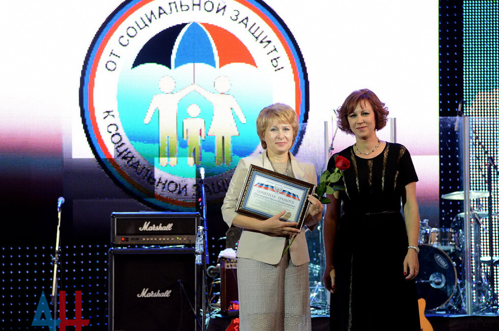 От Главы ДНР Александра Захарченко она вручила директору Кировского психоневрологического интерната Вере Знак почетное звание «Заслуженный работник социальной защиты населения ДНР». Начальник труда и защиты населения администрации Куйбышевского района Наталья Фурсова получила медаль «За трудовую доблесть». Кроме этого, еще девять человек получили от лидера Республики грамоты и благодарности. Ведомственных наград удостоились шестнадцать работников.