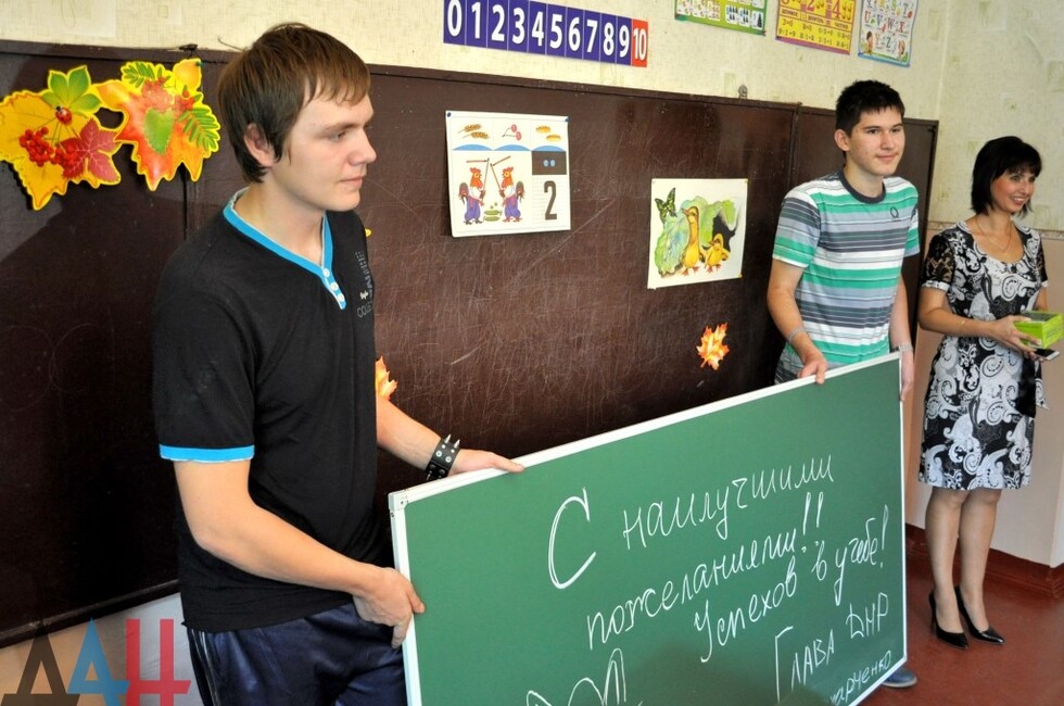 Донецк, 3 сен – корр. ДАН. Глава Донецкой Народной Республики Александр Захарченко передал школе №4, в которой учился, новую школьную доску для занятий. Подарок первоклассникам доставила Советник Главы по правам ребенка Яна Чепикова.