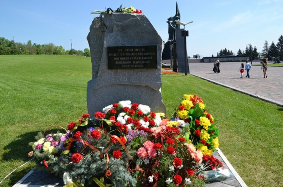 Донецк, 10 мая - ДАН. Митинг-реквием прошел сегодня у места, где будет возведен мемориал по жертвам обстрелов ВСУ, сообщает корр. ДАН с места события.