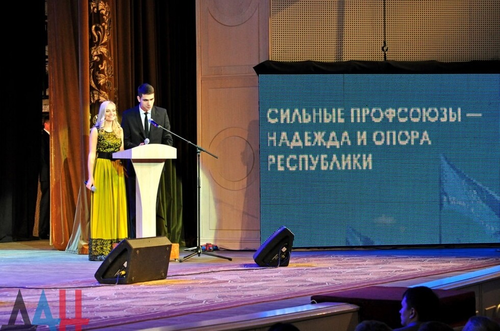 Донецк, 25 фев – корр. ДАН. Федерация профсоюзов ДНР годовщину создания объединения отметила торжественным награждением актива за достижения в развитии отраслей экономики Республики. Мероприятие прошло в Центре славянской культуры Донецка и собрало несколько сотен человек.