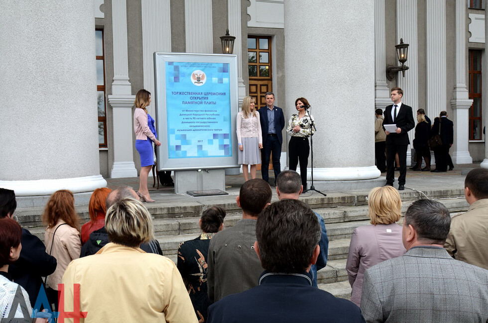 Отметим, что история появления памятной плиты длится с 31 марта этого года, когда на праздновании 90-летия муздрамы министр финансов ДНР Екатерина Матющенко вручила театру сертификат на получение необычного подарка.