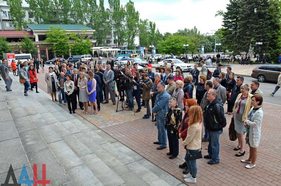 Донецк, 20 мая – корр. ДАН. Памятная плита с изображением фасада Донецкого государственного академического музыкально-драматического театра появилась сегодня на его здании в центре республиканской столицы. Мемориал был подарен министерством финансов ДНР и посвящен 90-летнему юбилею муздрамы.
